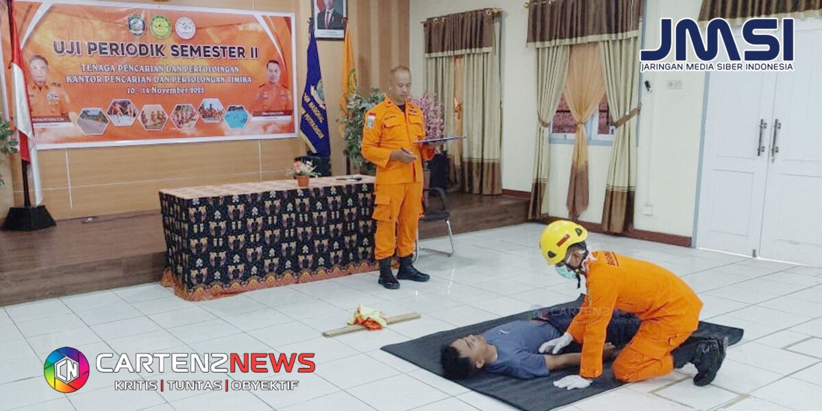 TIMIKA, CARTENZNEWS.com – Kantor Pencarian dan Pertolongan (SAR) Timika melaksanakan uji periodik bagi 54 personel tenaga pencarian dan pertolongan.