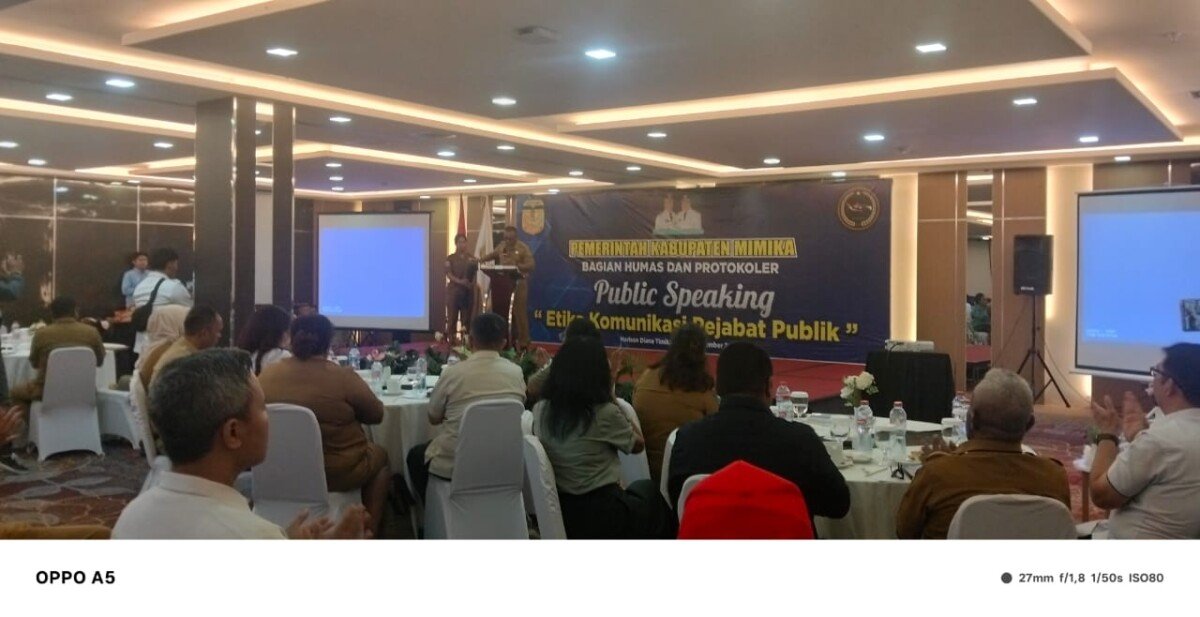 TIMIKA, CARTENZNEWS.COM – Pemerintah Kabupaten Mimika bagain Humas Dan Protokoler menggelar Public Speaking “Etika Komunikasi Pejabat Publik” bertempat di Meeting Room Hotel Horison Diana Senin, 8 Desember 2025.
