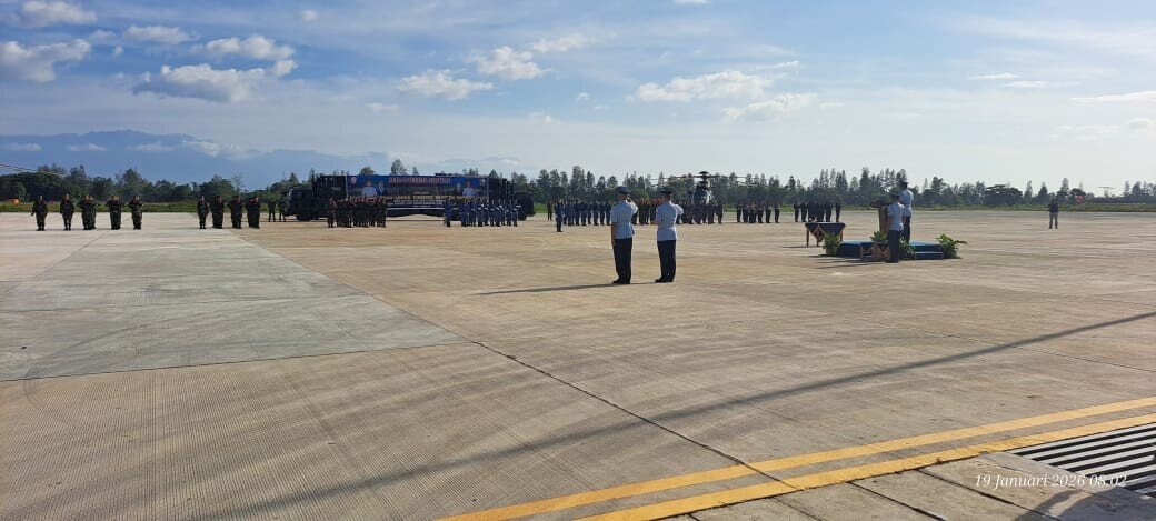Upacara serah terima jabatan dipimpin langsung oleh Pangkodau III Marsda TNI Dr. Azhar Aditama D, S.Sos MM M.Han di Appron Baseops Lanud Kelurahan Kwamki, Distrik Mimika Baru, Senin (19/1).