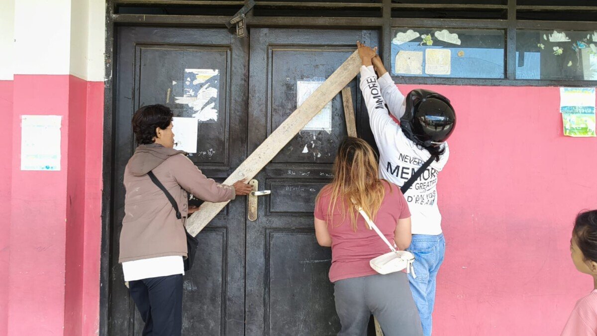 Masih Juga Dipalang, Orang Tua Siswa SD Negeri Inauga Timika Lakukan Aksi Bongkar Palang