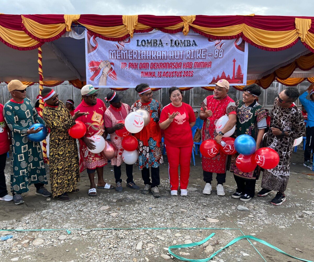 TIMIKA, CARTENZNEWS.com-Meriahkan Hari Ulang Tahun (HUT) Kemerdekaan Republik Indonesia (RI) ke-80, Dewan Kerajinan Senin Daerah (Dekranasda) dan Tim Penggerak Pemberdayaan dan Kesejahteraan Keluarga (TP PKK) Kabupaten Mimika menggelar aneka perlombaan.
