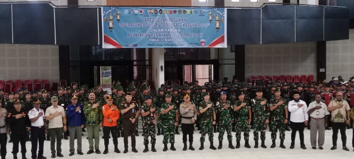 Digelarnya operasi Ketupat Noken 2026 ditandai dengan apel gelar pasukan di gedung Eme Neme Yauware, Kamis (12/3/2026) dipimpin langsung oleh Kapolres Mimika, AKBP Billyandha Hildiario Budiman, dan dihadiri oleh kepala-kepala satuan TNI-Polri, Forkopimda Mimika dan tamu undangan lainnya.