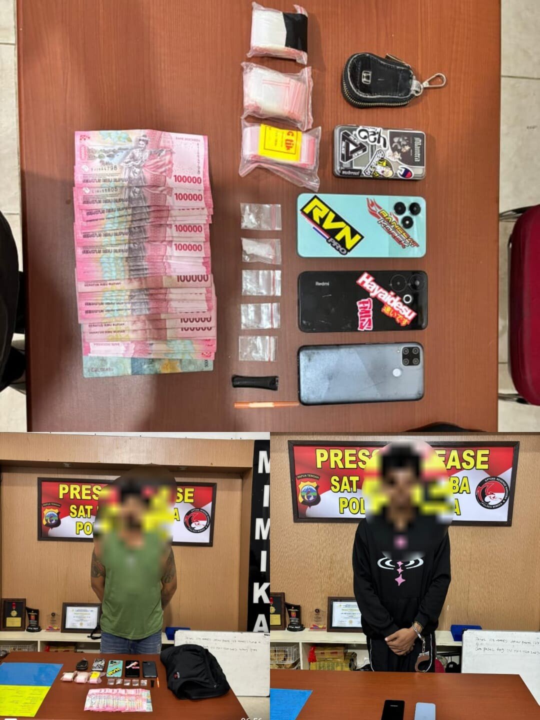 Kasi Humas Polres Mimika Iptu Hempy Ona mengatakan, penangkapan yang berdasarkan LP/A/02/I/2026/SPKT. Sat Resnarkoba/Polres Mimika/Polda Papua Tengah, tanggal 21 Januari 2026 tersebut berhasil mengamankan tersangka berinisial RI (33) dengan barang bukti yang berhasil di amankan di antaranya: 1 paket plastik klip bening sedang berisikan Narkotika Golongan 1 jenis Sabu, 4 paket plastik klip bening sedang berisikan Narkotika Golongan 1 jenis Sabu.