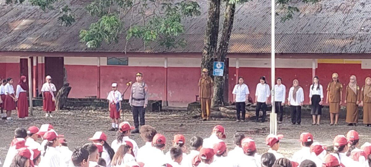 Wakapolsek Mimika Baru (Miru) Iptu Muhammad Iqbal Saleh memimpin upacara pada hari Senin (27/4/2026) di sekolah yang beralamat di Kelurahan Wonosari Jaya, Distrik Wania, Kabupaten Mimika, Provinsi Papua Tengah, .