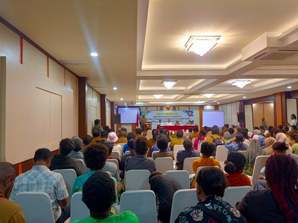 Engel mengakui bahwa setelah Perda ditetapkan, muncul isu-isu di masyarakat yang berpotensi menimbulkan gesekan antara pengusaha lokal asli Papua dengan pengusaha dari luar. “Karena itu, Satpol PP mengambil inisiatif untuk segera melaksanakan sosialisasi Perda Nomor 4 Tahun 2024 ini,” tegasnya.