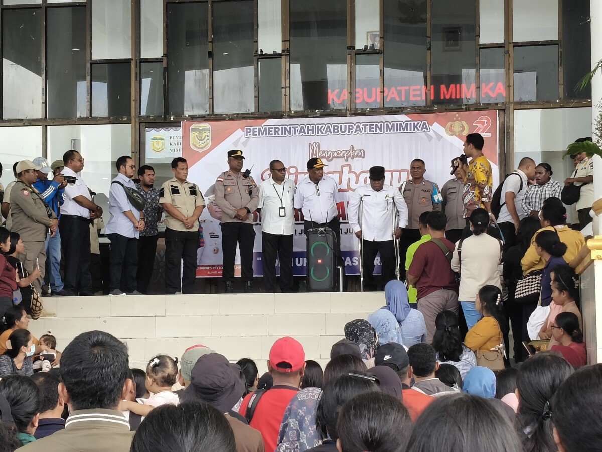 TIMIKA, CARTENZNEWS.com-Sekda Mimika, Petrus Yumte menemui 483 Guru PPPK yang melakukan aksi damai di Kantor Bupati Mimika, Kamis (3/7/2025).