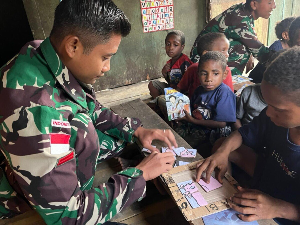 Upaya meningkatkan kualitas sumber daya manusia di wilayah pedalaman Papua terus dilakukan oleh prajurit TNI. Salah satunya melalui program Rumah Baca yang digagas oleh personel Yonif 511/DY di Distrik Kanggime, Kabupaten Tolikara, Minggu (8/3/2026).