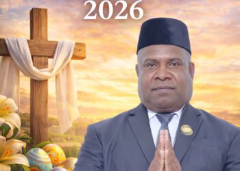 Sekretaris PMI Provinsi Papua, dr Raflus Doranggi  memukul tifa sebagai tanda menutup  kegiatan Muskab PMI Kabupaten Puncak  di Hotel Grand Mozza Timika, Papua. (Foto: Cartenz News/Yosefina)