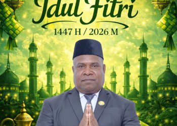 Penyerahan uang kepala dari Prajurit  Satgas Yonif R 600/Modang kepada  perwakilan keluarga Almarhum Bruno Amenim di rumah duka Kelurahan Bade, Distrik Edera,  Kabupaten Mappi. (FOTO: ISTIMEWA)