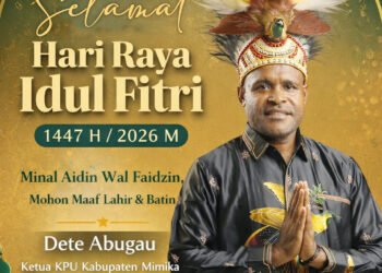 Sekretaris PMI Provinsi Papua, dr Raflus Doranggi  memukul tifa sebagai tanda menutup  kegiatan Muskab PMI Kabupaten Puncak  di Hotel Grand Mozza Timika, Papua. (Foto: Cartenz News/Yosefina)